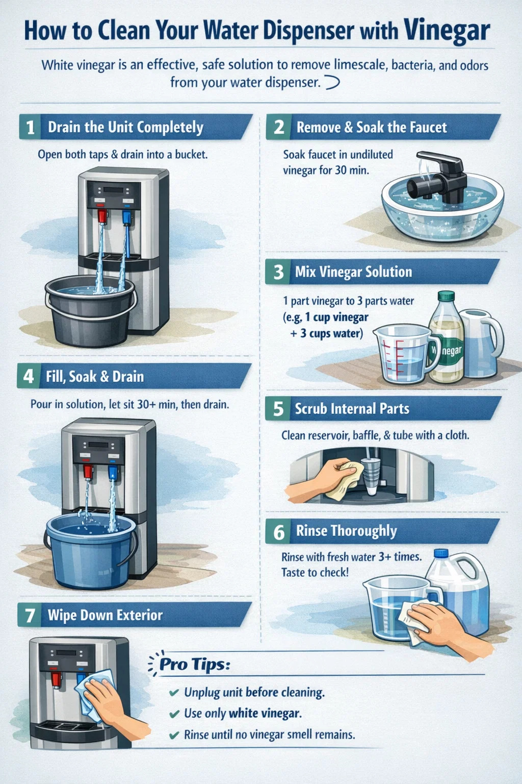 Pas cu pas: Cum să curățați un dozator de apă cu oțet
