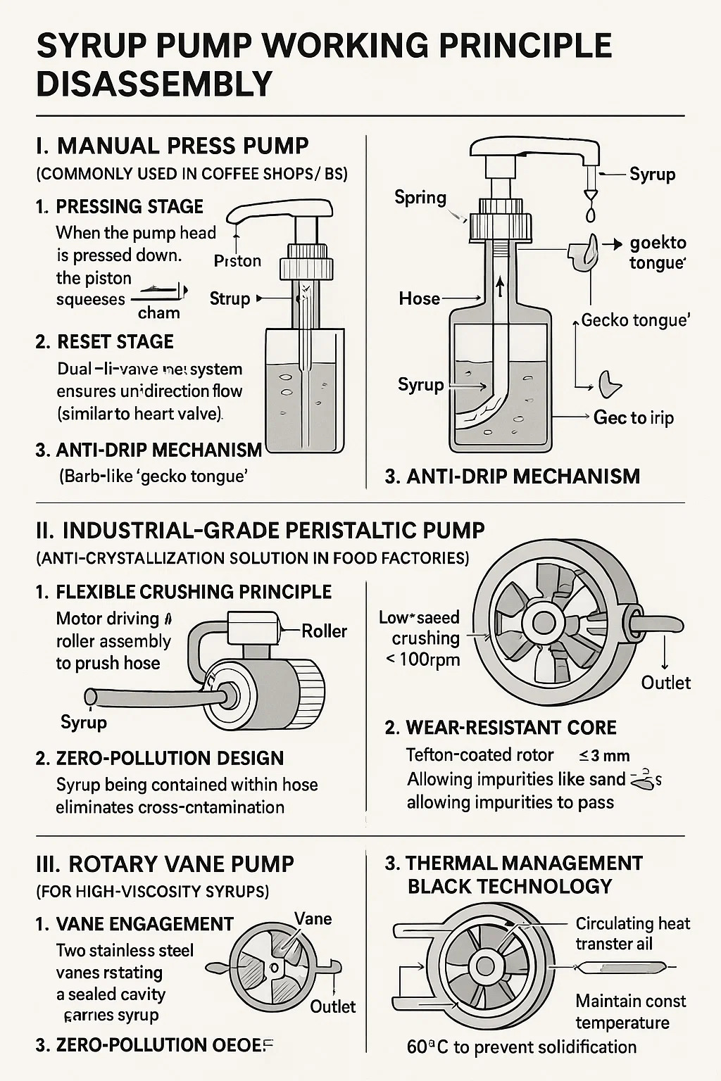 Pompa de sirop Principiul de lucru Dezasamblarea