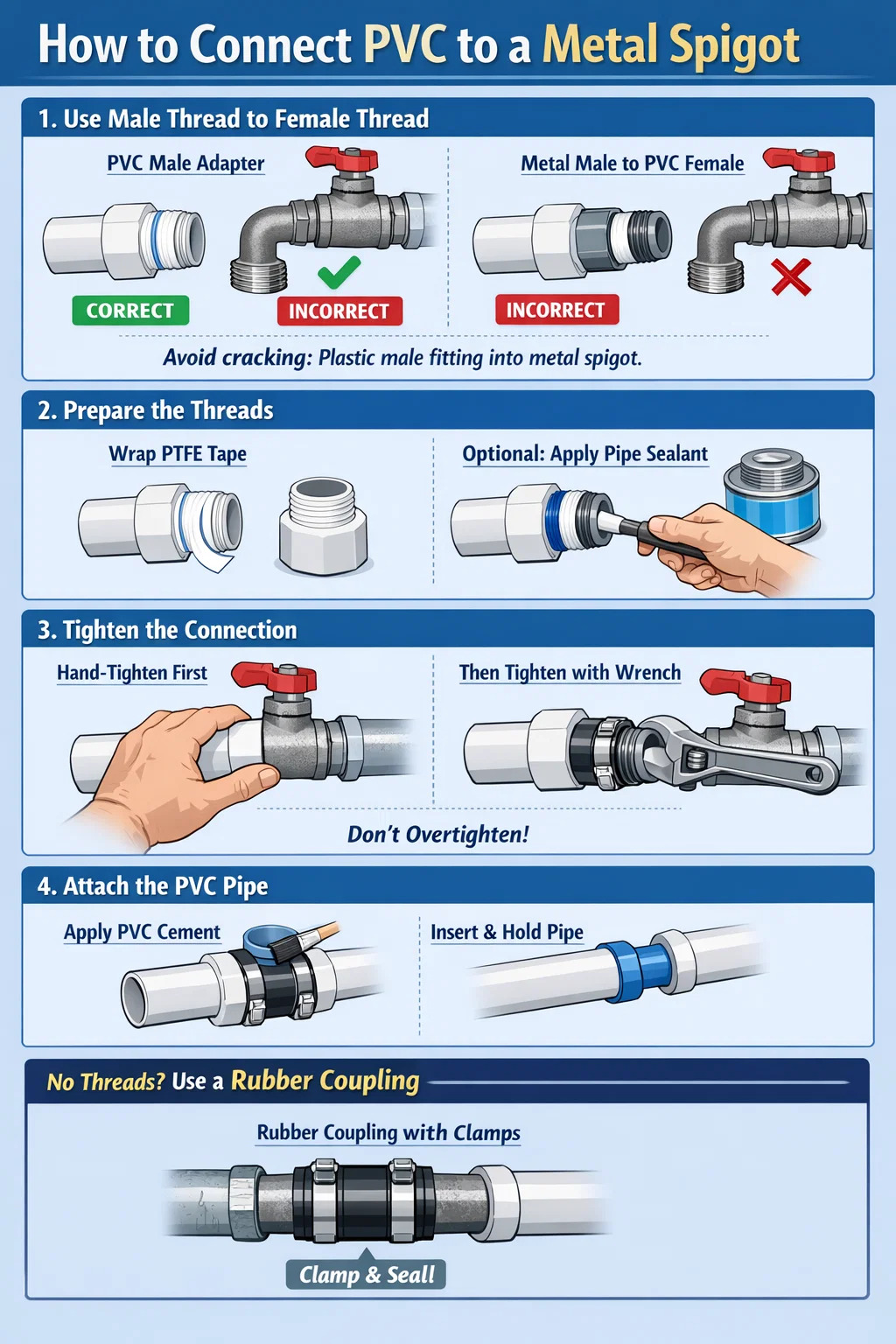 ◾ Cum se conectează PVC-ul la a Spigot de metal