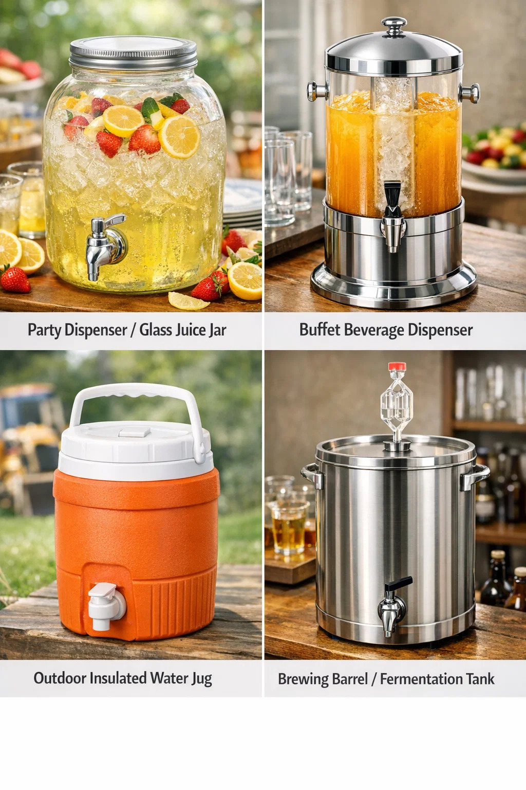 În viața noastră de zi cu zi, aceste recipiente cu un mic robinet, unde oamenii se adună pentru a lua băuturi, au mai multe denumiri diferite în funcție de aspectul și utilizarea lor. Dacă căutați online sau întrebați într-un magazin, folosind următoarele nume veți obține cu siguranță rezultatul corect: