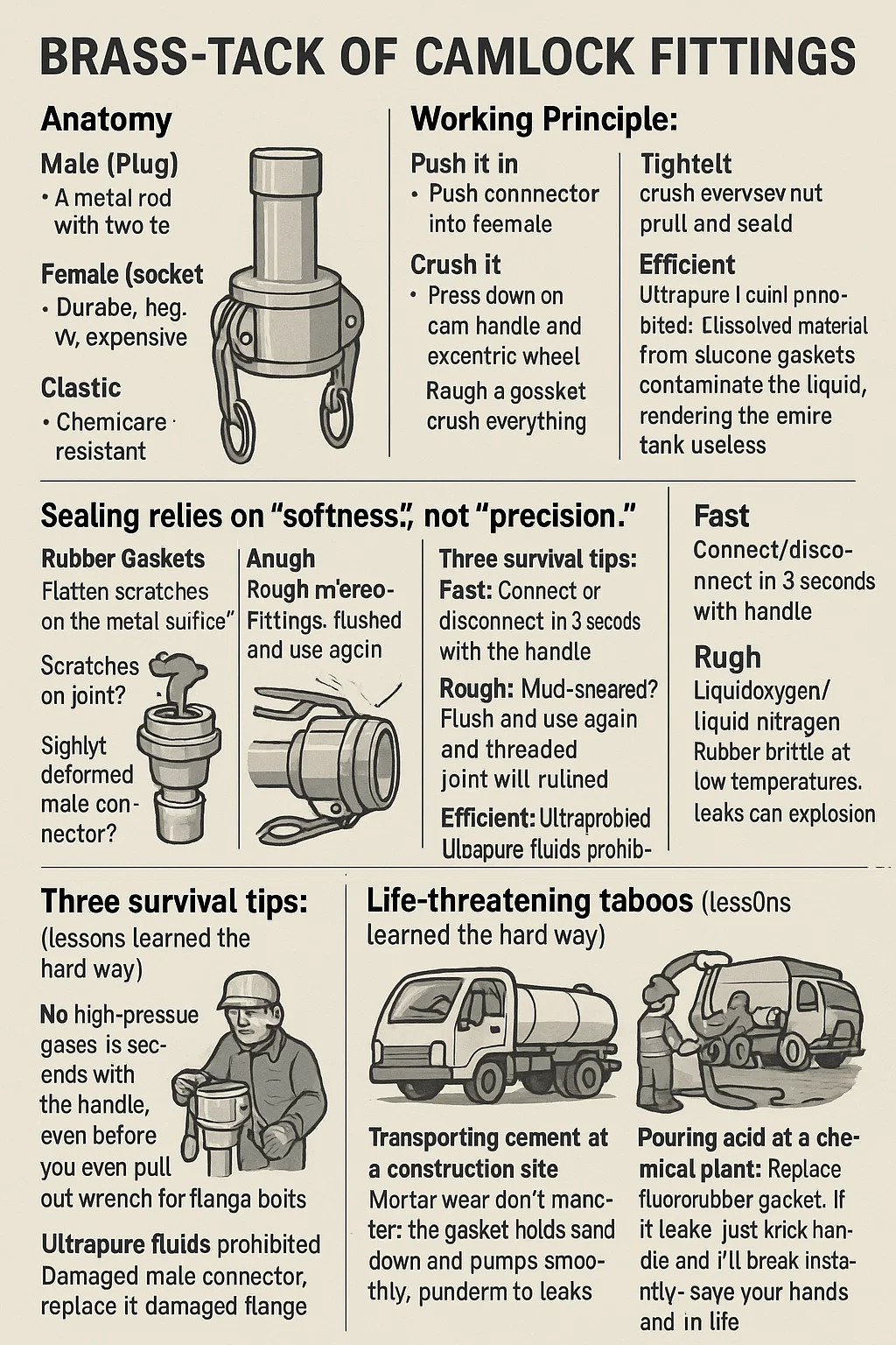 Garnituri din cauciuc: se extind și se defectează după expunerea la benzină/motorină, rezultând scurgeri!