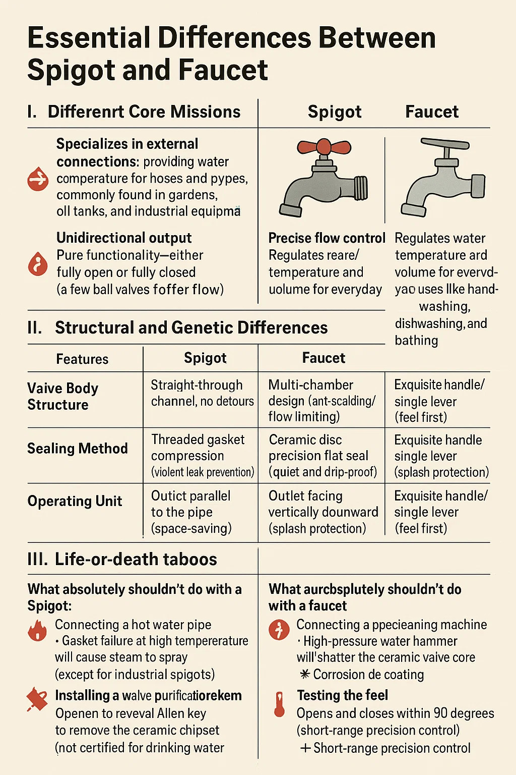 Ceea ce nu ar trebui să faci absolut cu un robinet: conectarea unei mașini de curățare a conductelor → ciocanul de apă de înaltă presiune va spulbera miezul de supapă ceramică ️ Distribuirea combustibilului diesel/acid sau alcalin soluții → Coroziunea acoperirii va înfunda aerator aerator